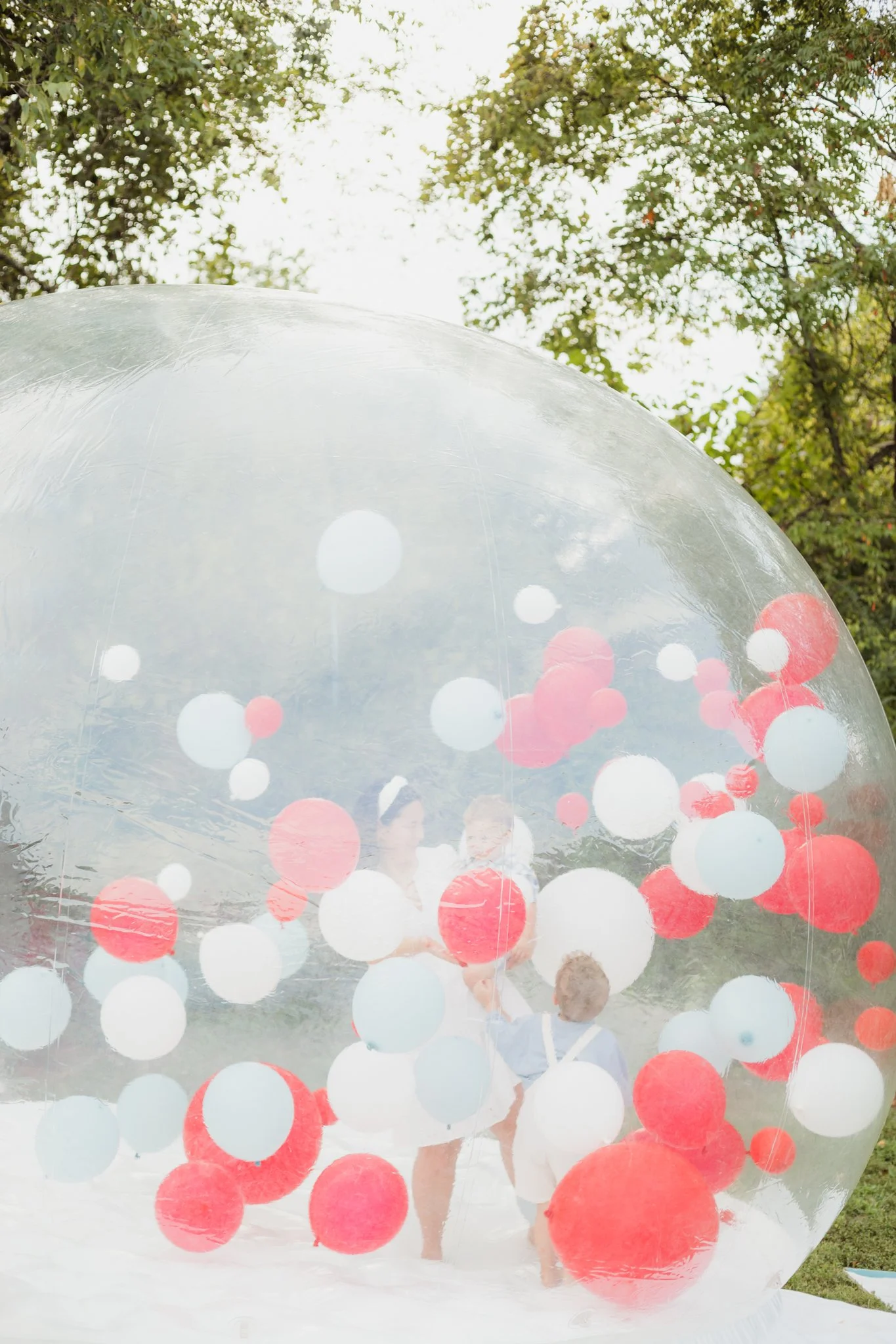 If you would like to add balloons and don’t want to go the pickup option, we recommend working with one of our approved balloon vendors. DIY balloons are not recommended as they may not swirl around the bubble house properly or may pop quickly.