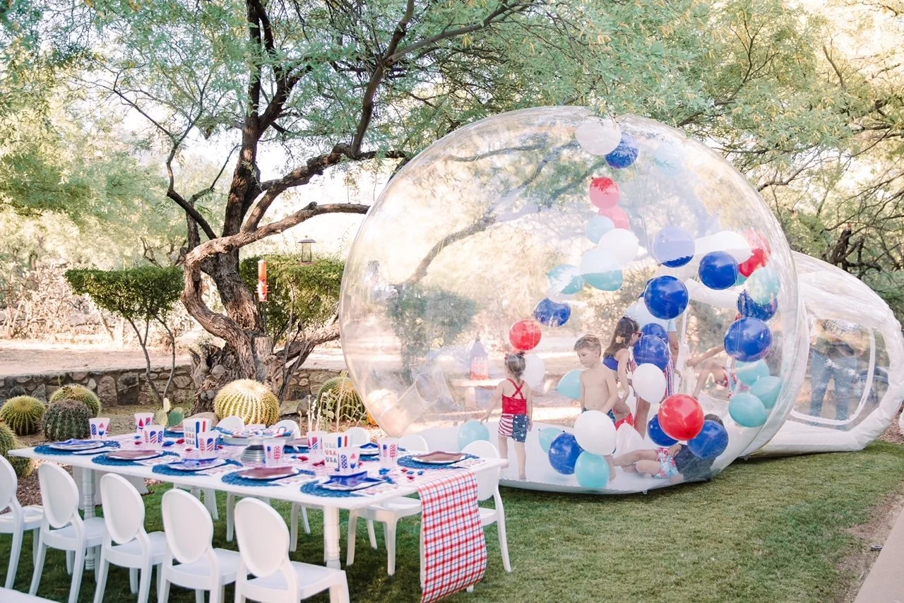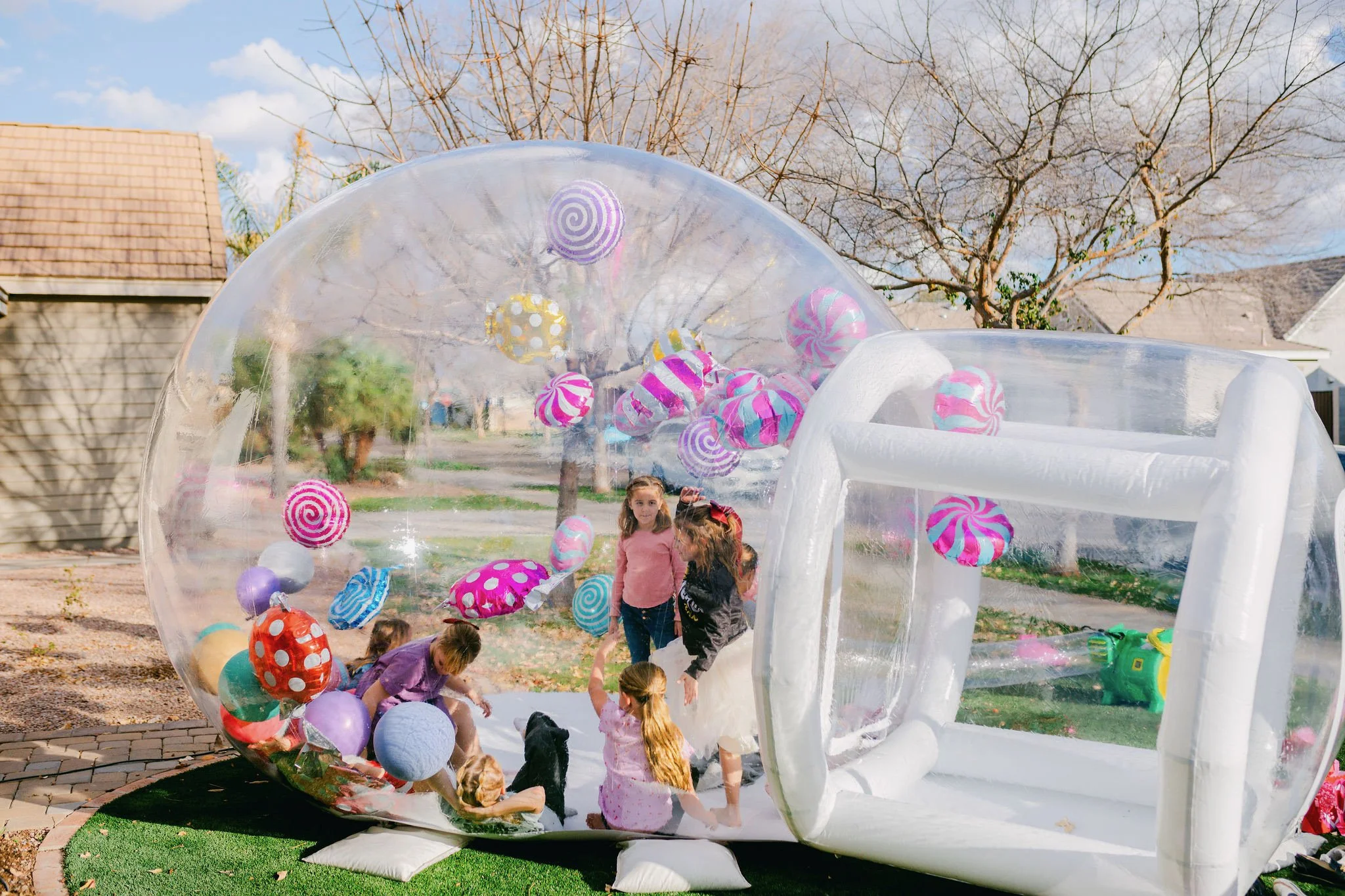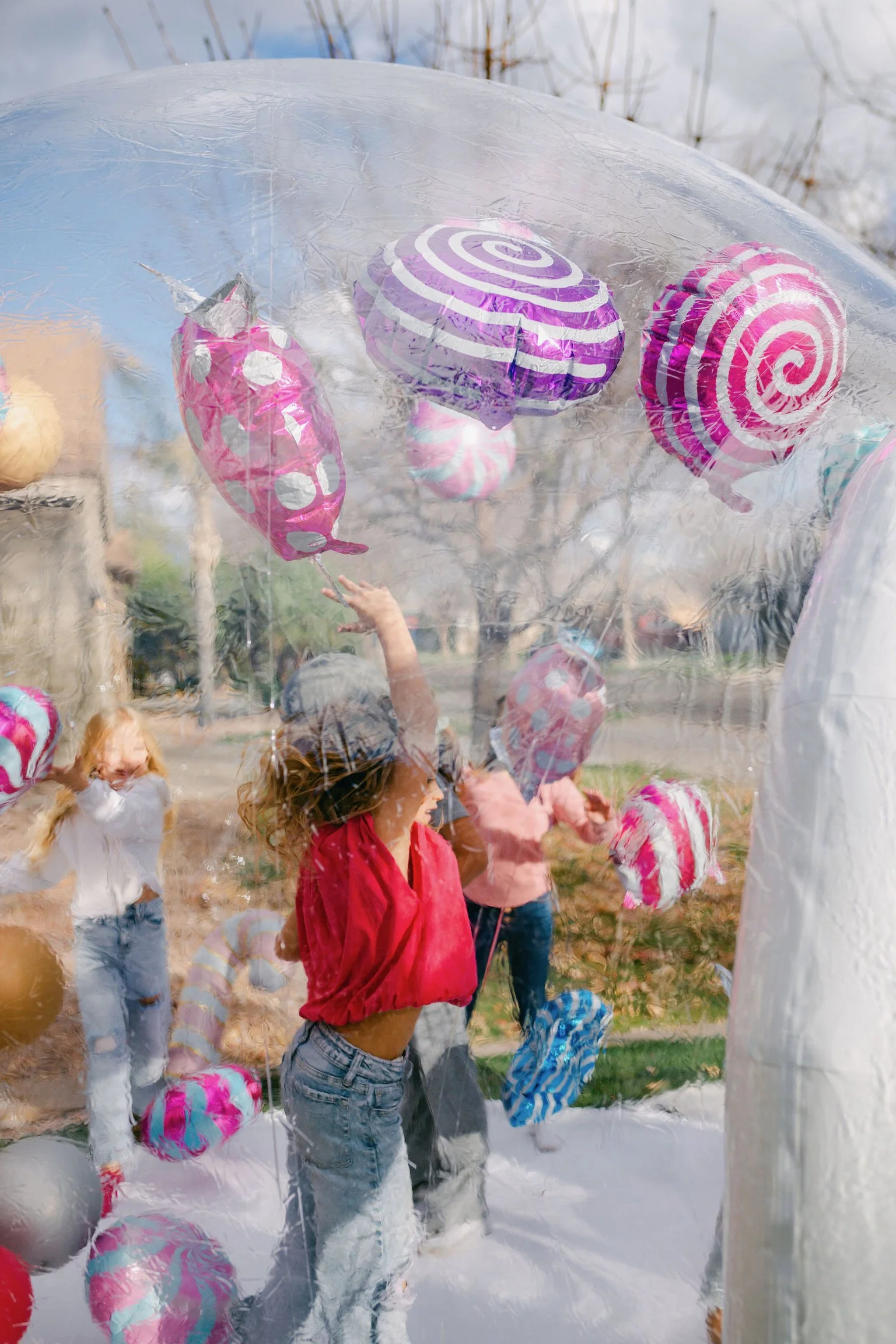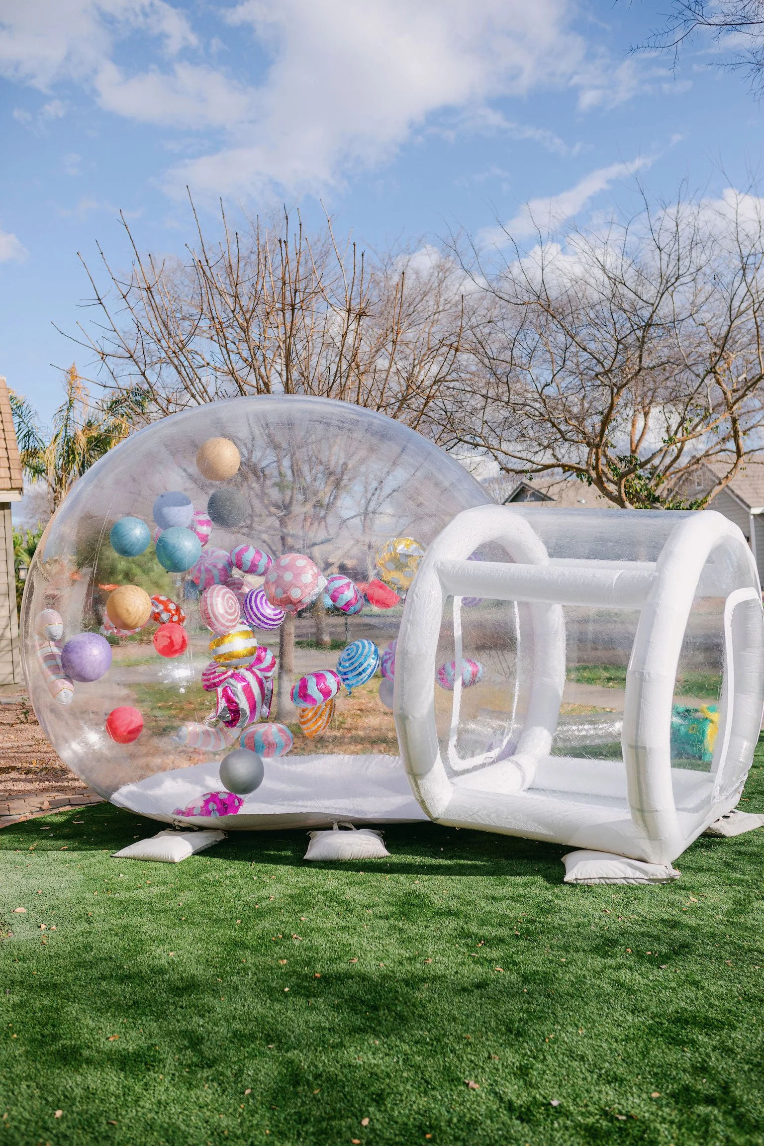 The Bubble House is the trendiest rental on the market and the perfect addition for your next celebration. The transparent dome can be filled with 100 professional grade balloons that blow around inside like a giant snow globe, creating a fun and exciting environment for your guests. The Bubble House is perfect for weddings, birthdays, corporate events, and any occasion you always want to remember.