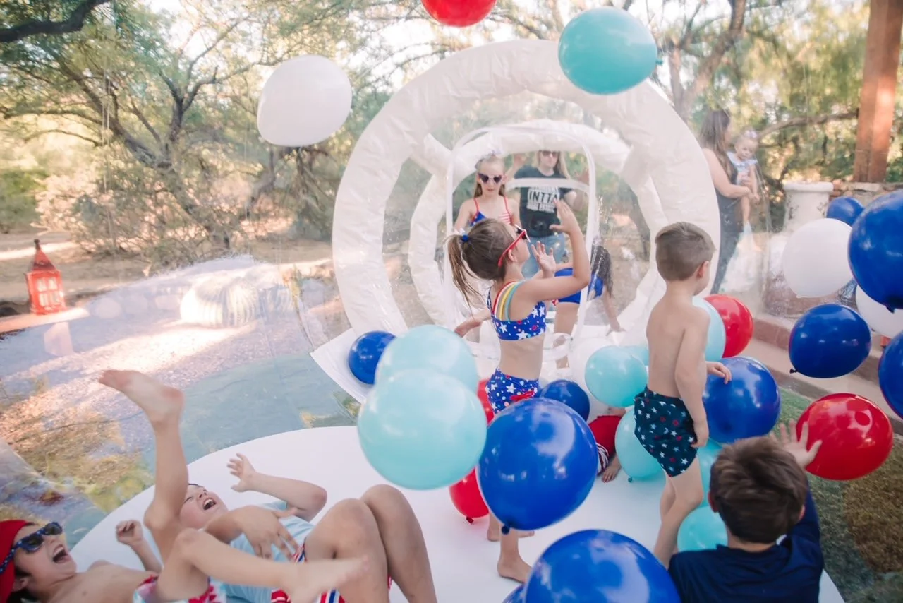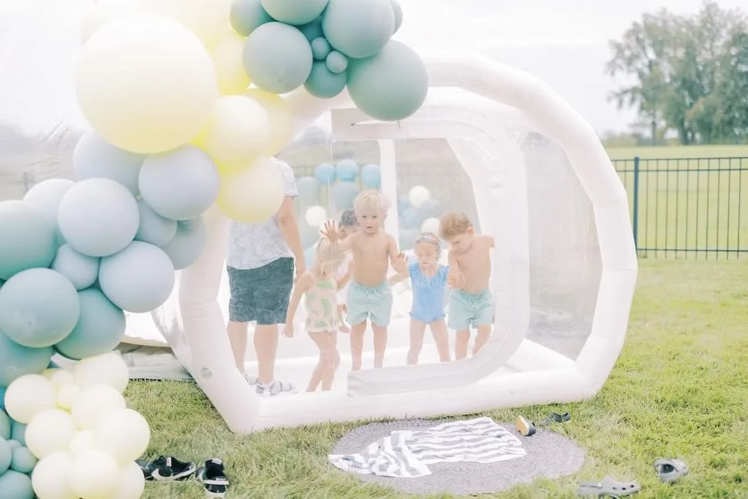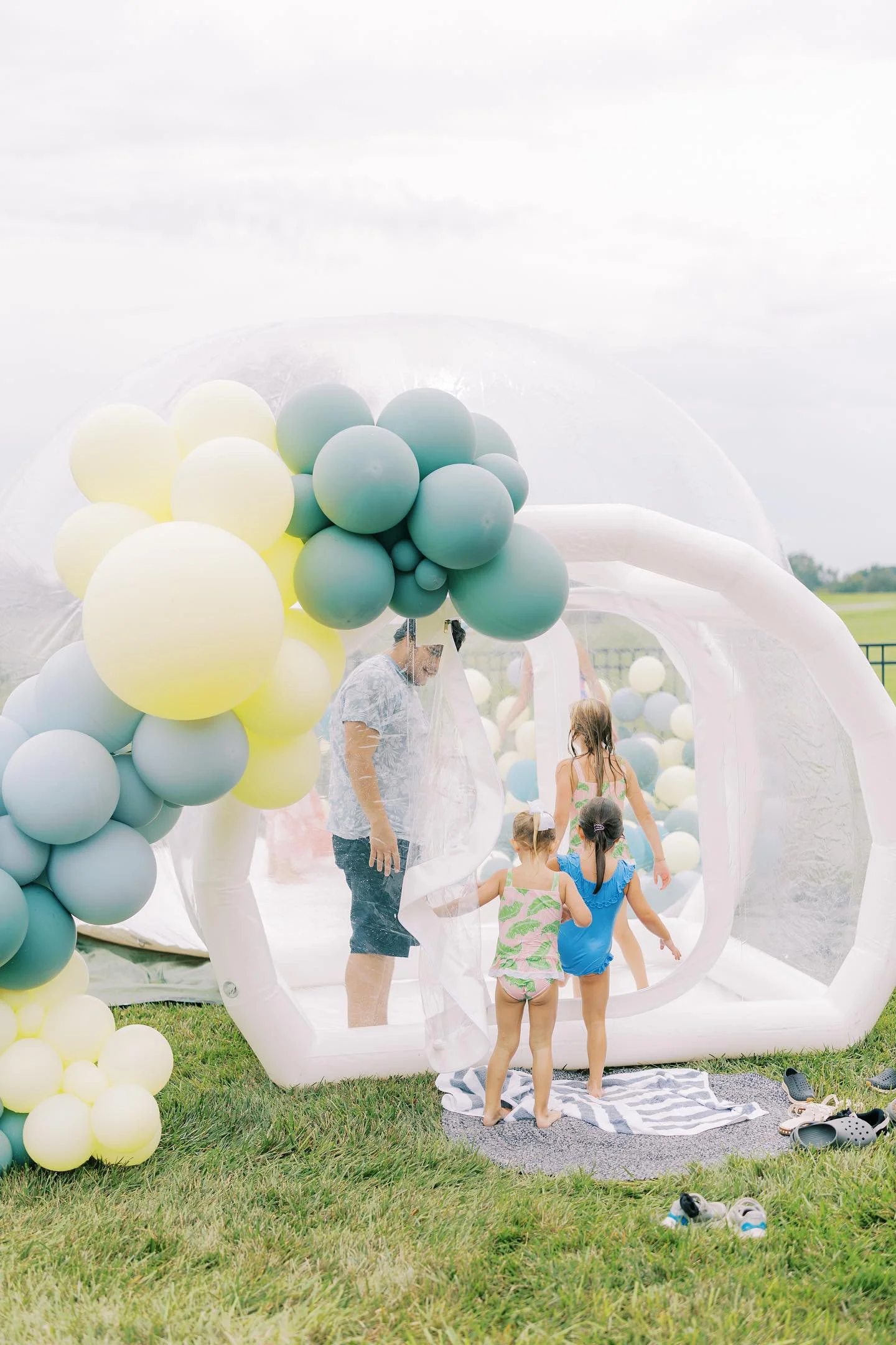 If you would like to add balloons and don’t want to go the pickup option, we recommend working with one of our approved balloon vendors. DIY balloons are not recommended as they may not swirl around the bubble house properly or may pop quickly.