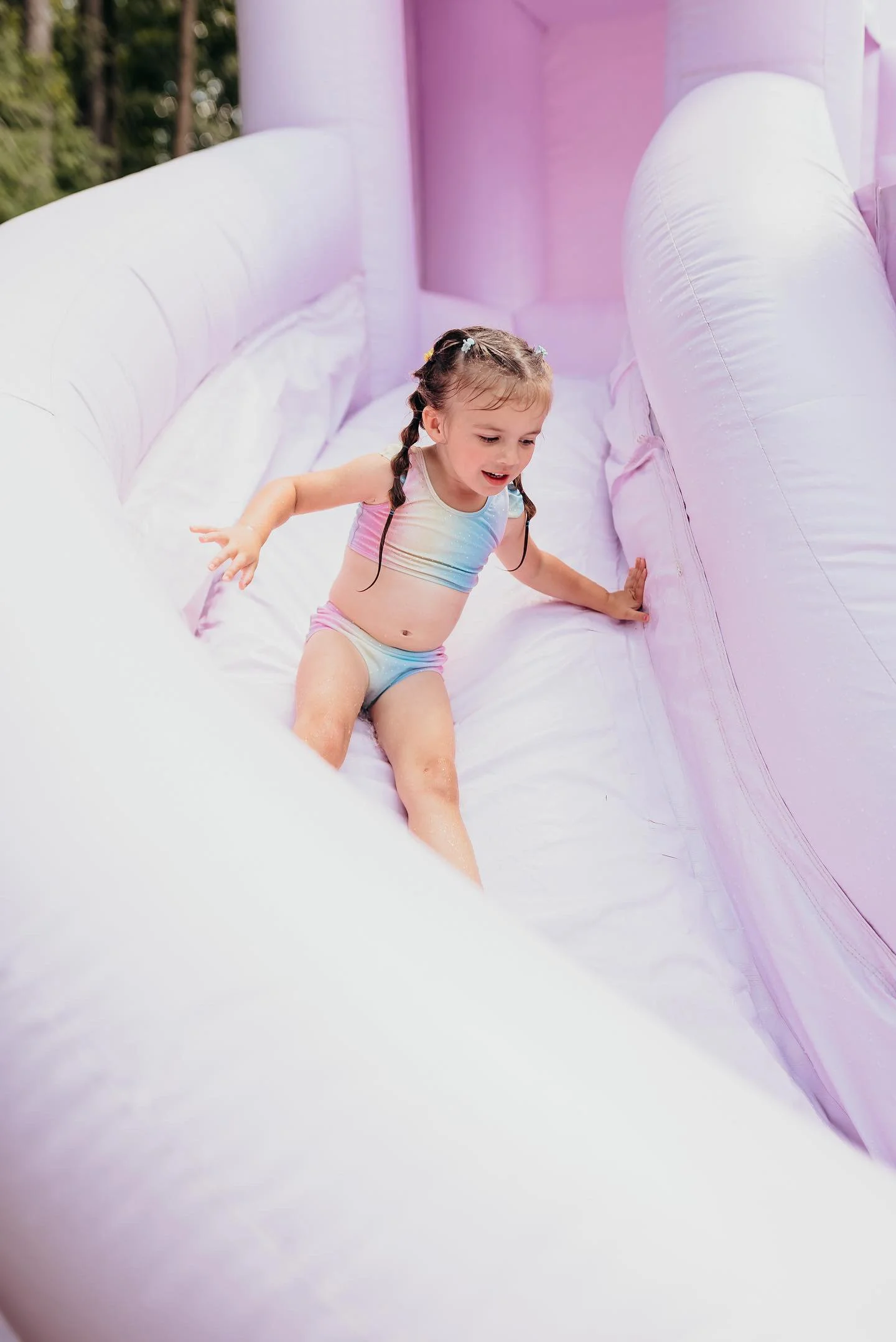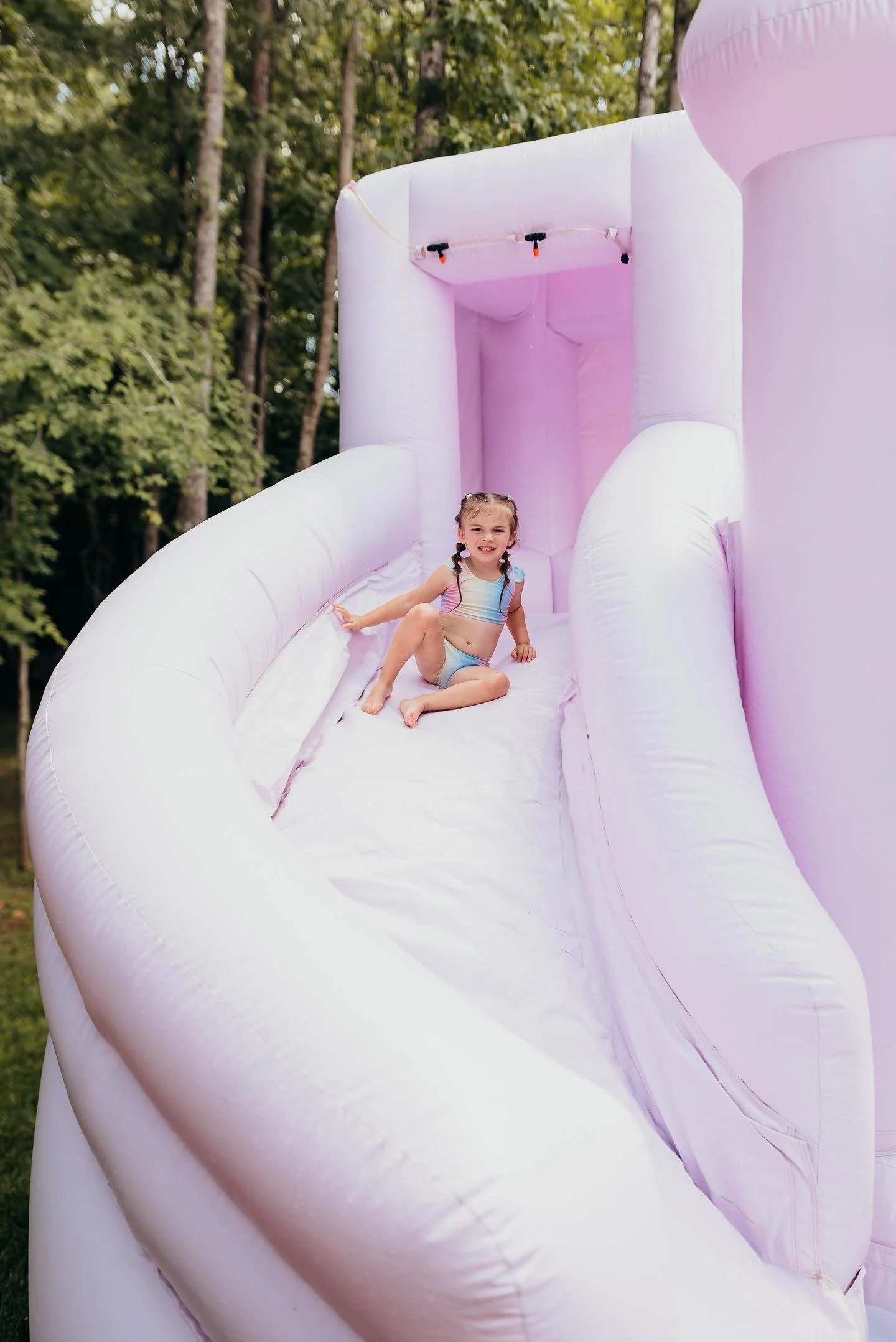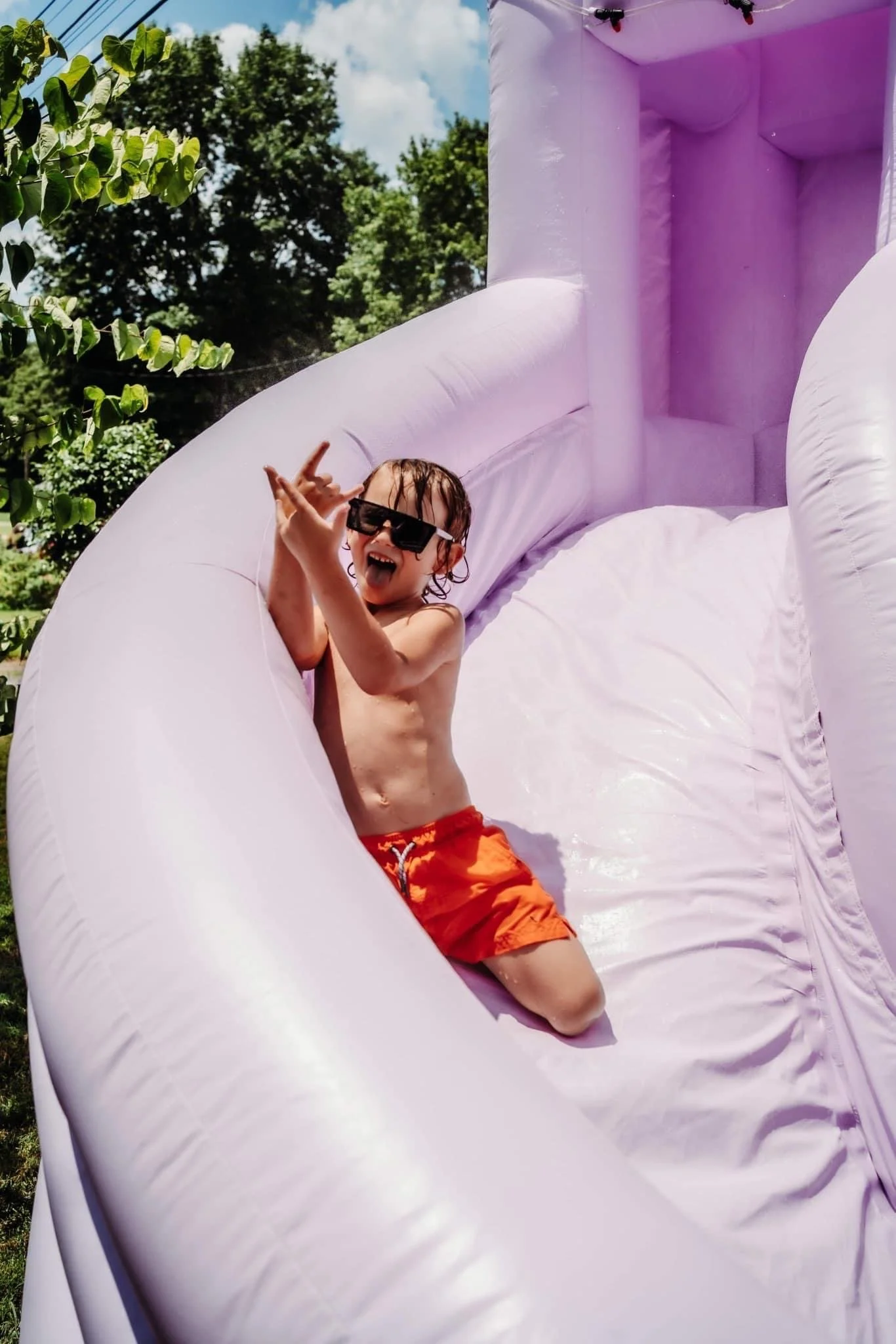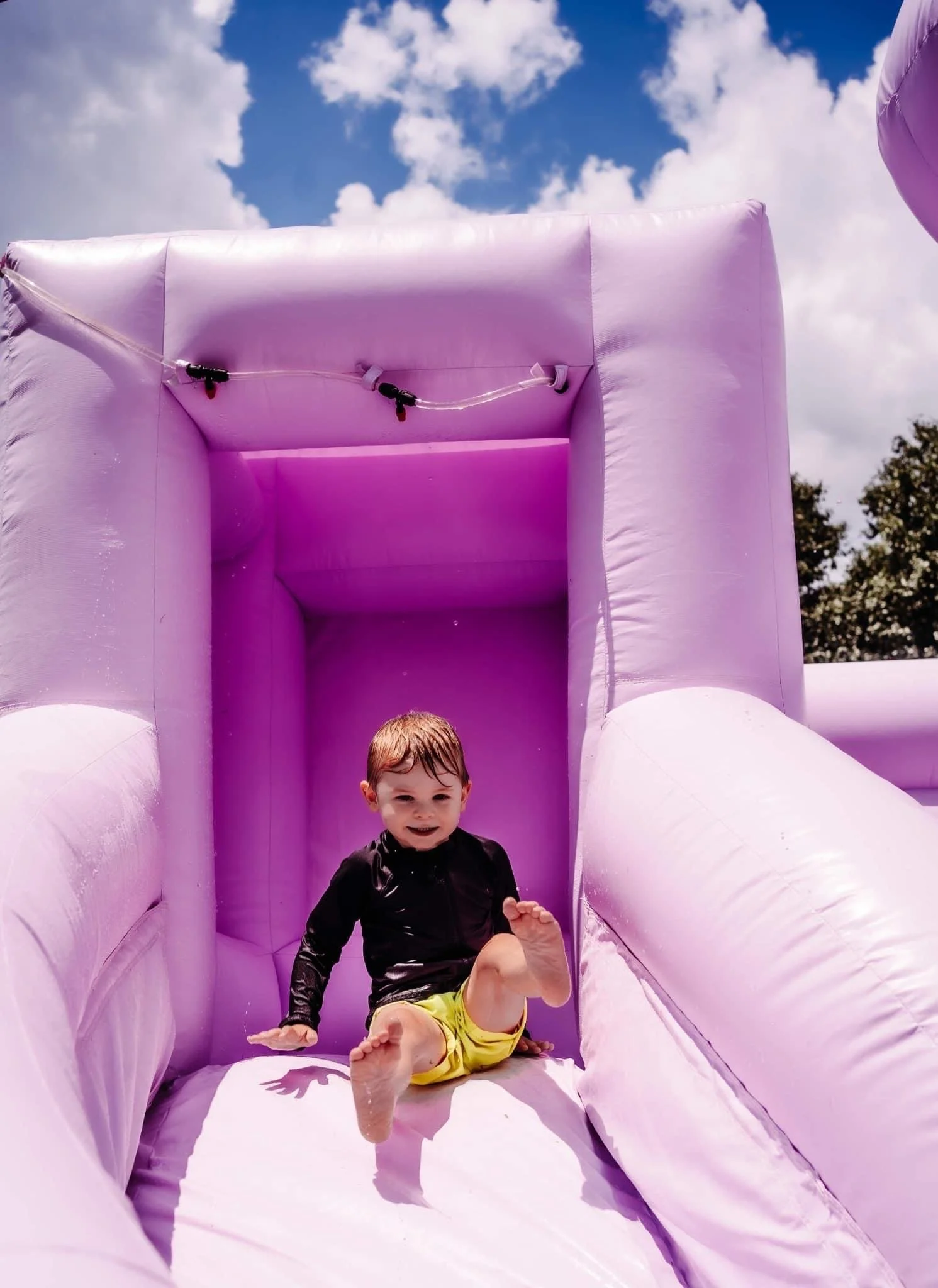 Middle Tennessee’s first and only modern lavender bounce house + waterslide combo is here and ready to make a splash at your summer party! This inflatable combo has plenty of bouncing space, a curved slide, and an 8’ x 4’ pool. Designed for ages 10-12 and below, The Lavender Haze is the perfect way to entertain your guests while escaping some of that summer heat.