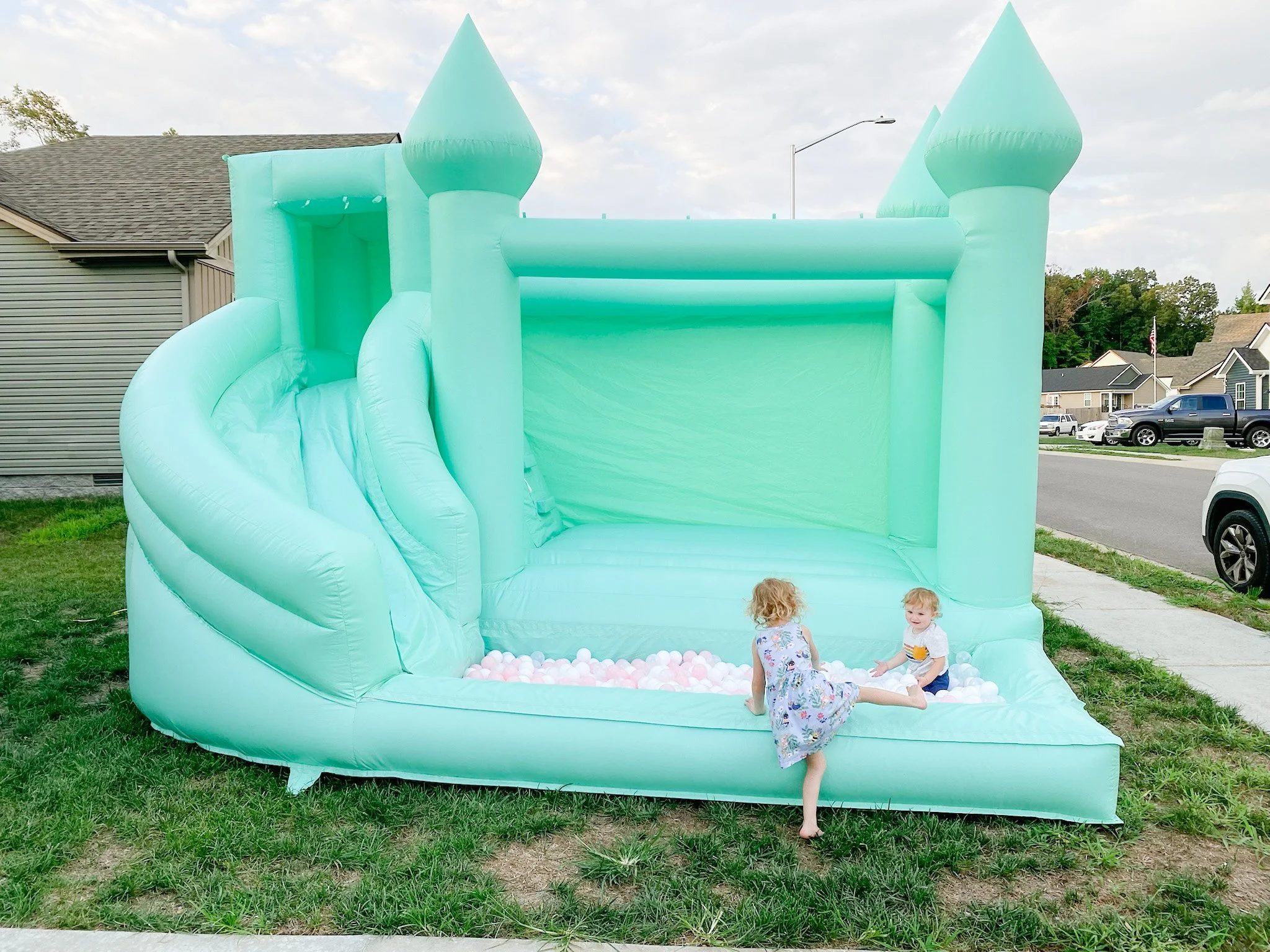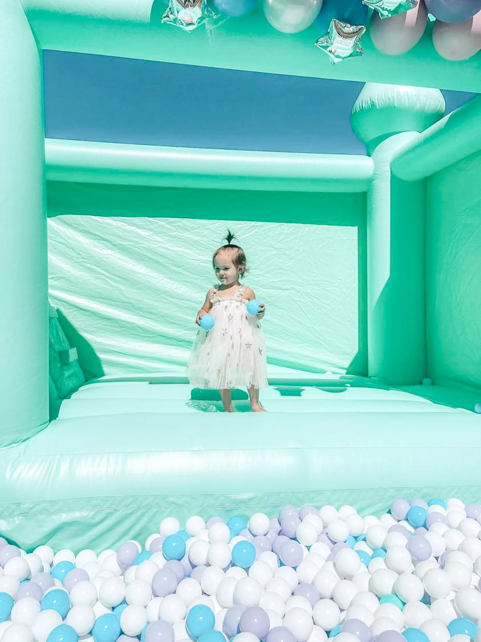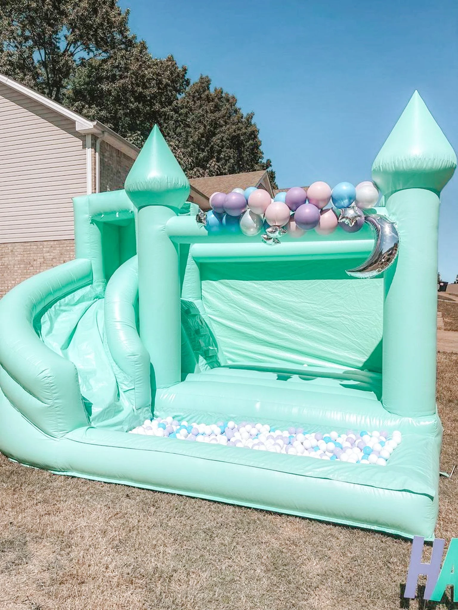 Tennessee’s first and only Colored Bounce House + Ball Pit Combo, The Fantasea features a beautiful bold solid Teal! It’s perfect “Tiffany Blue” color is the perfect pop to any event. Designed for ages 8-10 and below, our Tiffany Blue Ball Pit + Castle Combo is the perfect way to create magical memories at birthday parties, baby showers , and more! The Fantasea has a full 8 x 4 pool section with a raised wall for safety that is used as a ball pit from October - March and as a traditional pool from April - September! If you are interested in renting The Fantasea as a Ball Pit outside of her traditional Ball Pit season please inquire with us before booking!