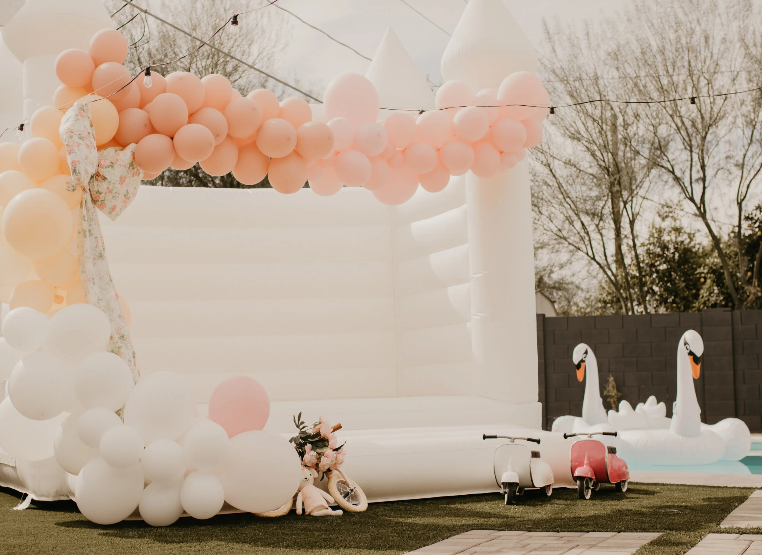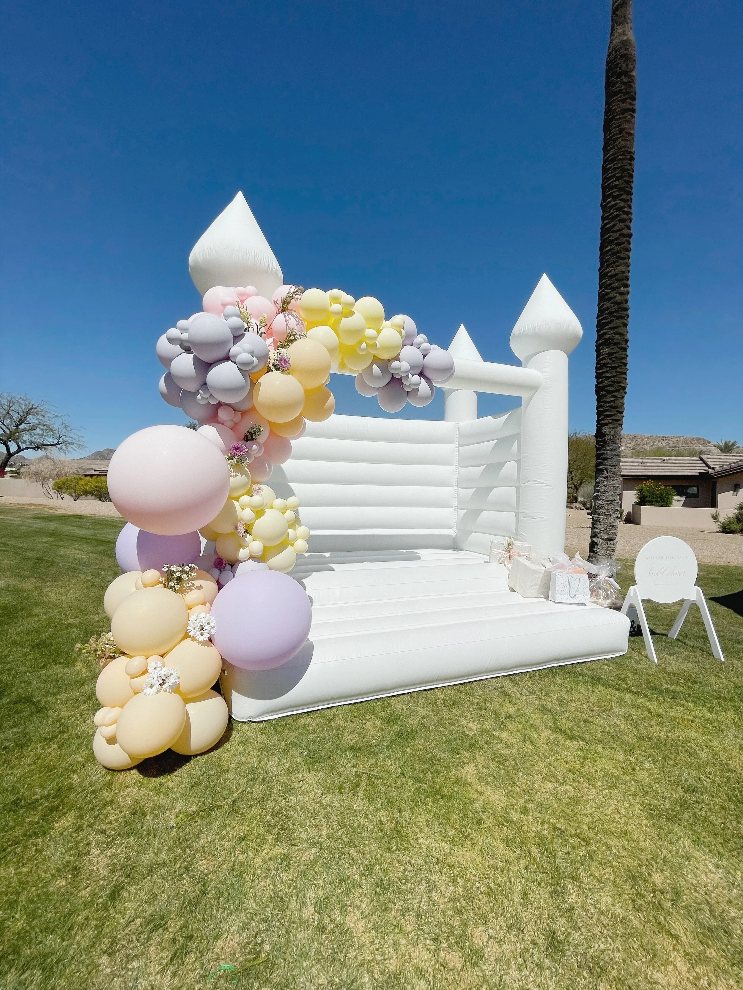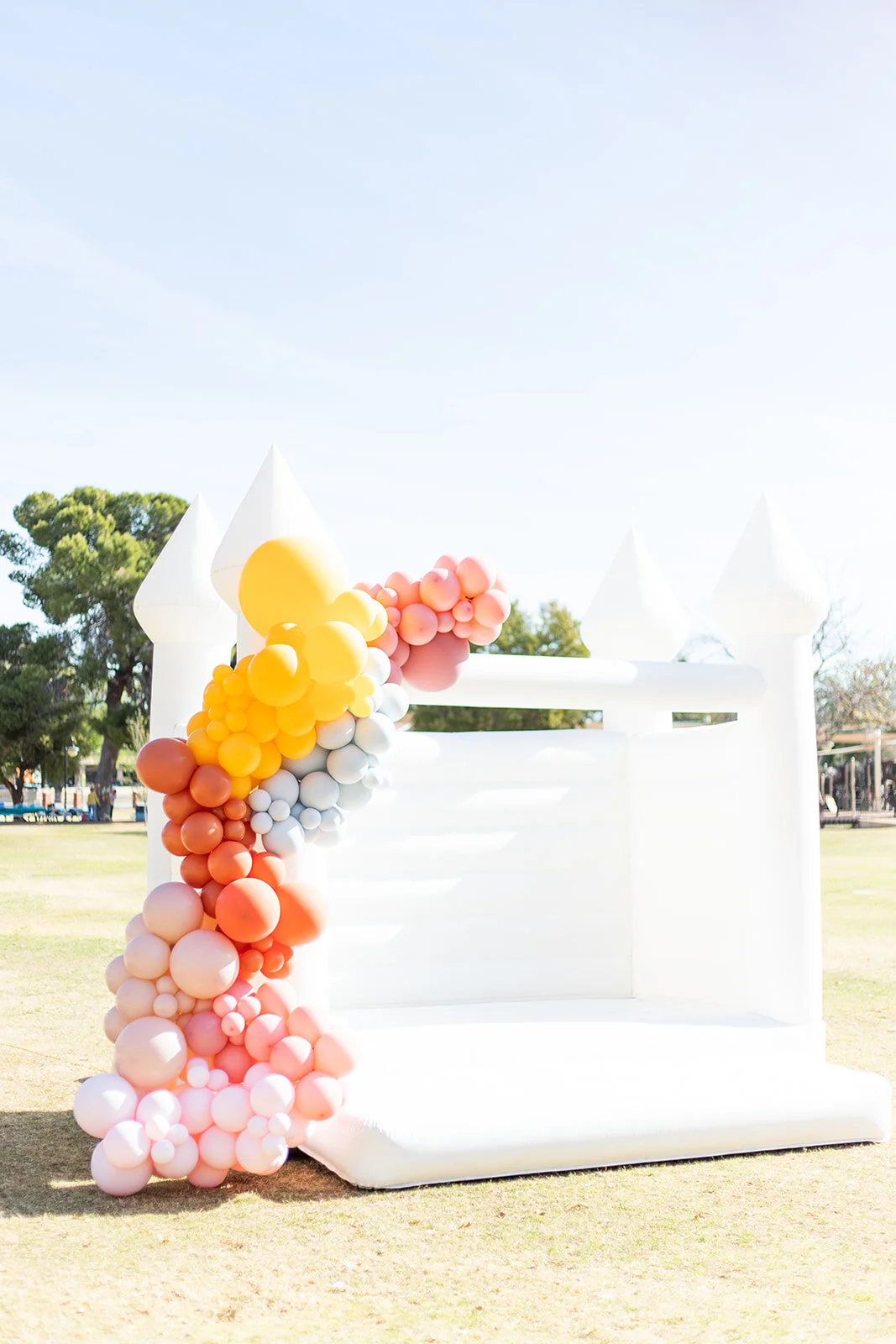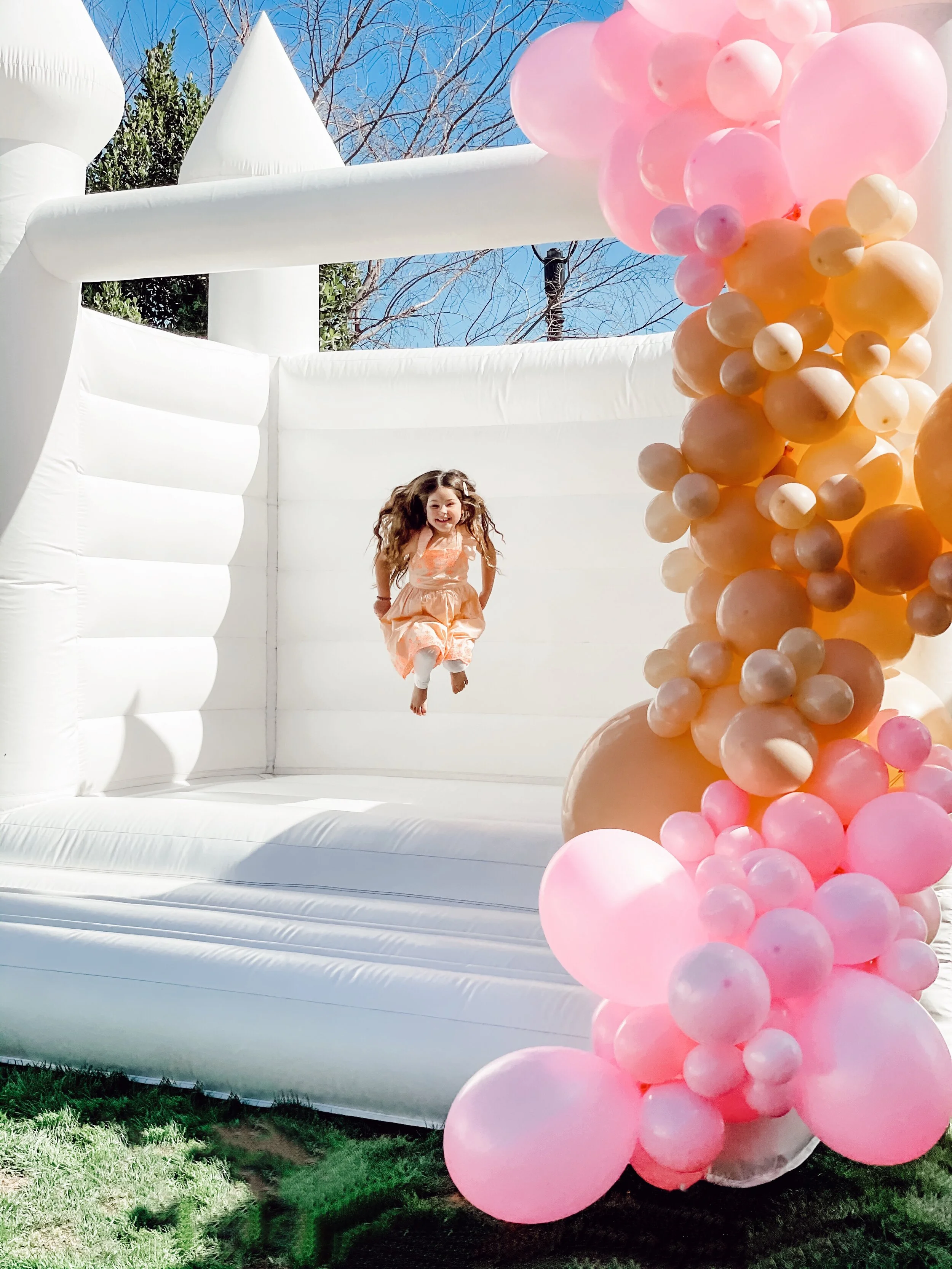 The Swan Lake White Castle is Tennessee’s favorite white bounce house! This bounce house is perfect for baby showers, bridal showers, birthday parties, and of course, weddings! Style the Swan Lake however you want with a beautiful balloon arch, flowers and greenery, fringe panels from yours truly, or even a handmade banner. No matter how you decide to dress up our white bouncer, she’s sure to be the star of the show at your next event!